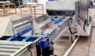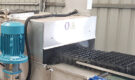 For certain uses, it is also possible between the de-stacker and washing tank to fit a shaker to eliminate as much peat and vegetal residues as possible from the tray walls so that the washing and filtering of recycled water is more efficient (this feature is optional). Intensity of shakes and number of shakes can be automatically set on the control board.