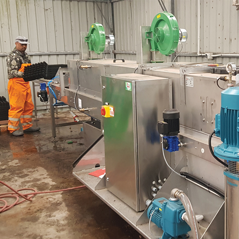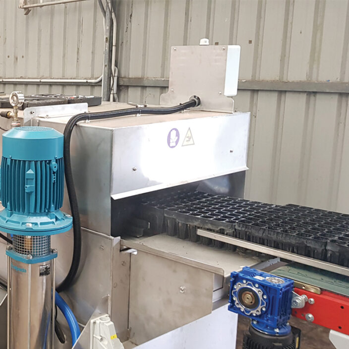 If nursery trays are not carefully washed and sanitised, plant disease, pests, viruses and other nasties can thrive. By cleaning the trays the next seedlings are given a healthy start. When done manually, tray washing is a slow process and can lack quality control. Seedlings grown on a commercial scale that have health issues can be destructive to growers as they try to rectify the problem.
