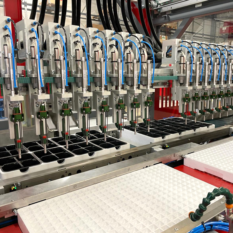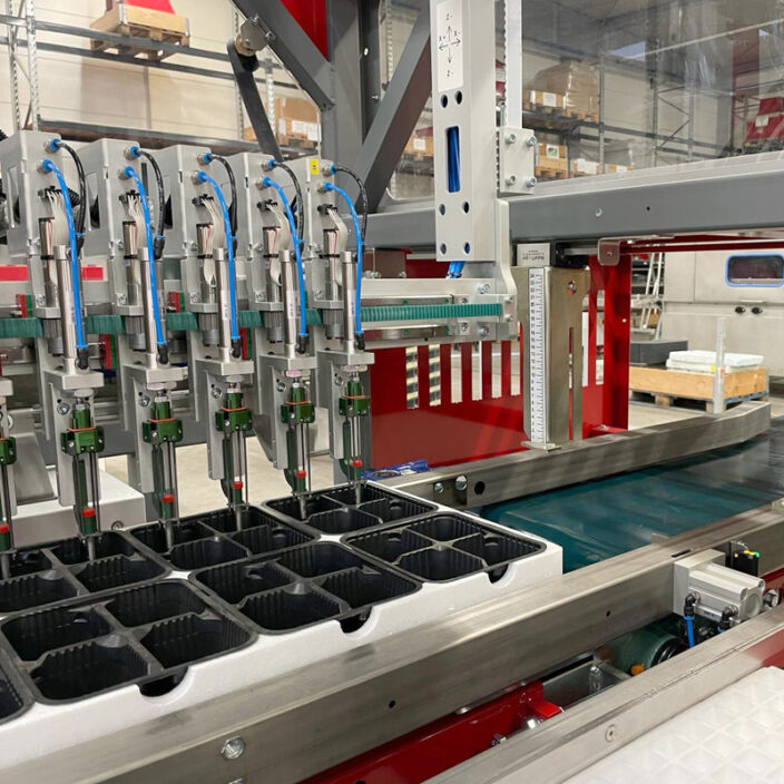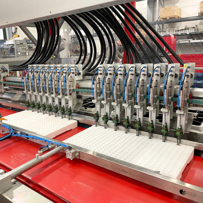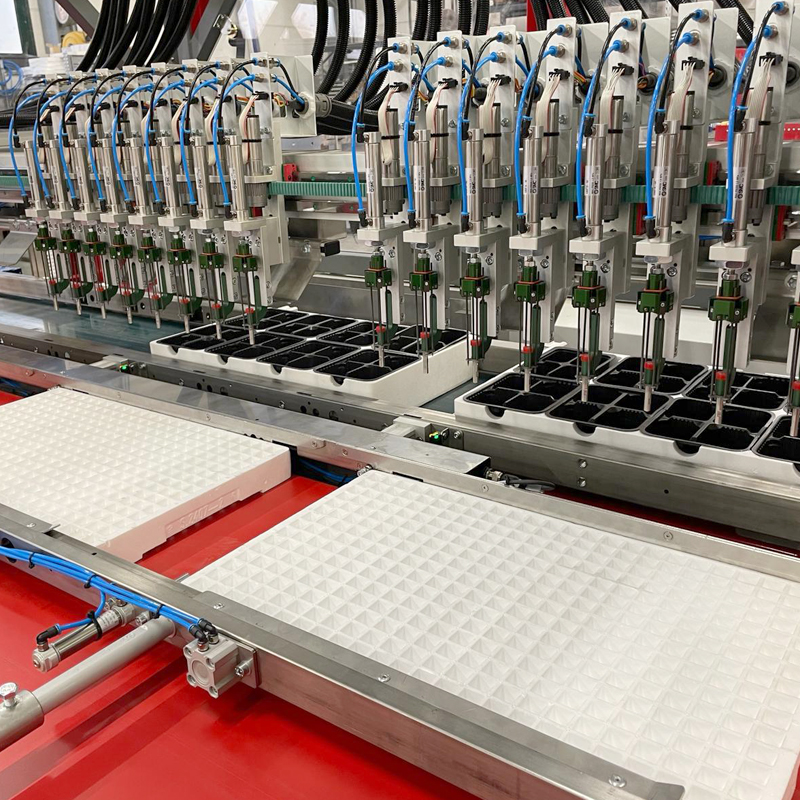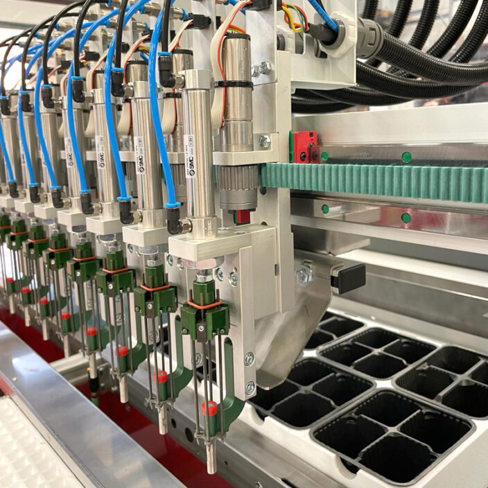 The machine is equipped with up to 32 self-driving, double movement fingers, which allows customers to achieve uniformity in plant spacing and depth, leading to consistent, healthier growth.