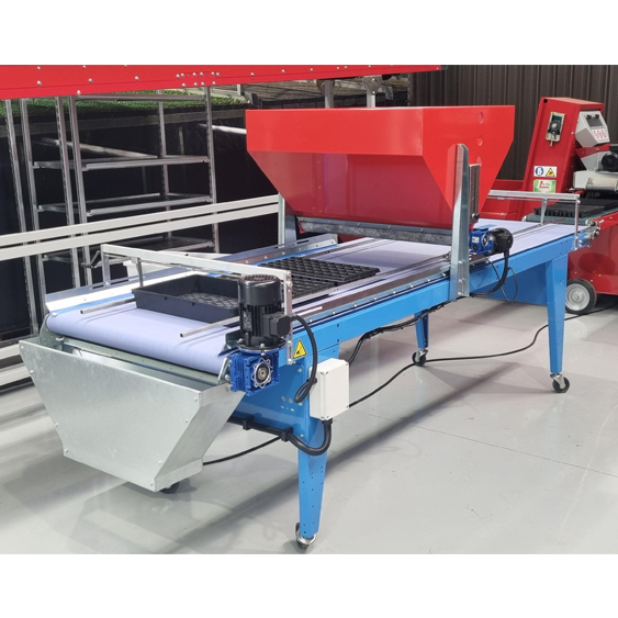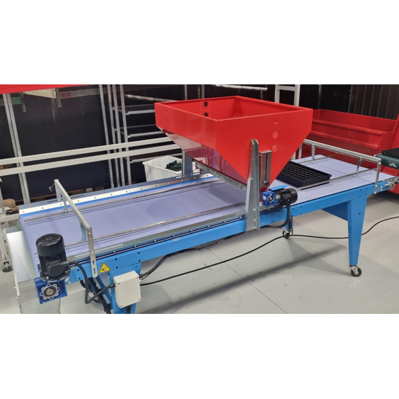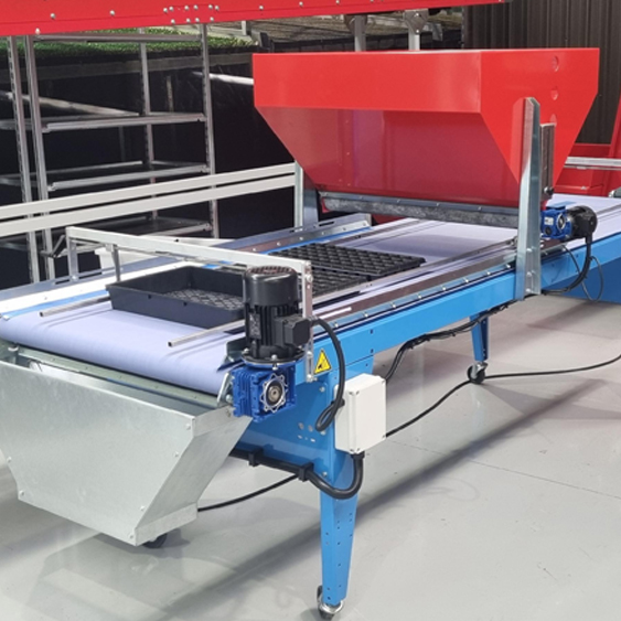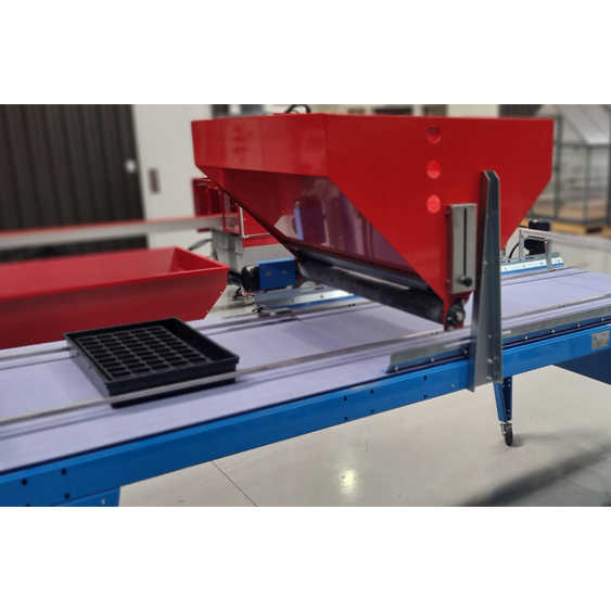 Italian-made for premium quality, this high-capacity Broadcast Seeder is designed for spread sowing of open trays, making it ideal for microgreens & herbs. The machine uses a seed plate that vibrates (pneumatically controllable) and a conveyor belt with electronic adjustable speed.